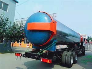 設(shè)備由筒體、封頭各一套、法蘭一套、密封裝置、鞍座裝置、彎臂裝置、安全連鎖1、安全連鎖2、保溫裝置、噴淋裝置、盛物料小車、盤子、貨筐、托盤一套,水泵一臺及全部的循環(huán)管路、框架和各種自閥門等部分組成。